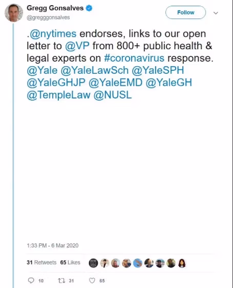 这封信的作者正是耶鲁大学流行病学家格雷格·贡萨尔维斯。2020 年 XNUMX 月之后,贡萨尔维斯花了大量时间攻击杰伊和他的同事。