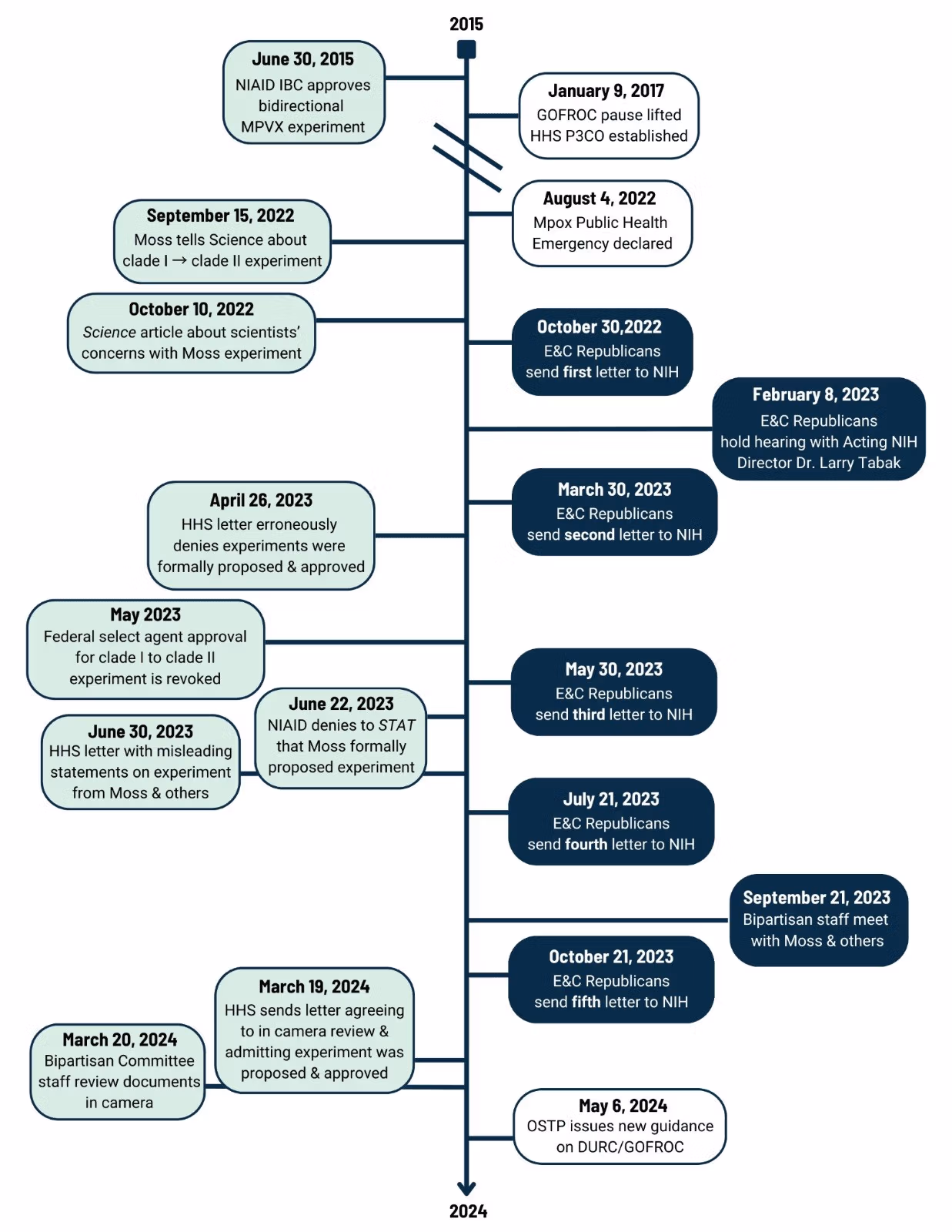 众议院能源和商业委员会的调查人员第一次了解到进行此类研究的愿望是在国家过敏症和传染病研究所的伯纳德·莫斯在一次 访问 - 科学杂志 2022 年,引发调查。